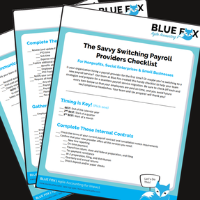 Is your organization hiring a payroll provider for the first time? Or maybe you're switching to a new payroll company? Our team at Blue Fox created this handy checklist to help your team strategize and prepare for a seamless payroll service migration. Be sure to check off each and every item so that your employees are paid on time, and you avoid future tax/compliance headaches.
