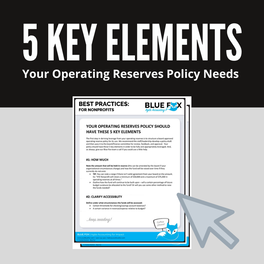 An Operating Reserves Policy is not merely a document required by bylaws. It's an important nonprofit management tool that can be leveraged to build organizational sustainability. We recommend that every useful policy contain 5 key elements. Download our free guide and ask yourself the right questions!