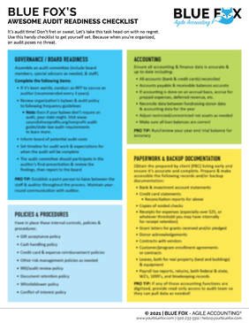 First, we must say that our team at Blue Fox is pro-audit for nonprofits. We know that financial oversight helps develop sustainable and transparent financial management practices. Is an audit intimating? It can be. But your organization will come out stronger on the other side. We encourage you to heed the advice in our audit readiness checklist so you can be as prepared as possible for a smooth and successful audit.