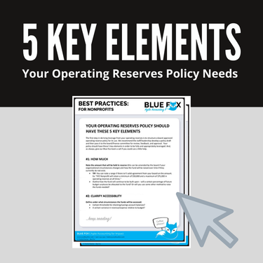 So, let’s talk about the best practices for starting an operating reserves policy. And don’t hesitate to call on the Blue Fox team for advice and support along the way. We want all the organizations in our den to achieve fiscal sustainability and security. We can help assess your financial position today and provide some benchmarks to help you make decisions as you set up your operating reserves for tomorrow.